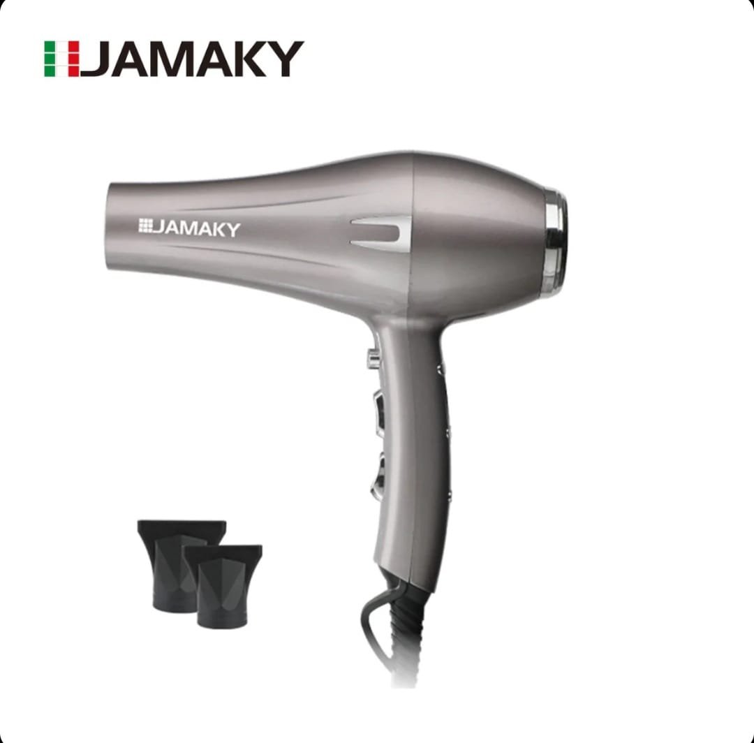 The Jamaky JPC30294 professional hair dryer delivers powerful and efficient drying with a high-performance 2400W motor and up to 20000 RPM speed. Designed for fast styling, it provides strong airflow while helping reduce heat damage. The narrow concentrator nozzle allows precise airflow control for smooth, salon-quality results. Its ergonomic and lightweight design ensures comfortable daily use at home or in professional salons.